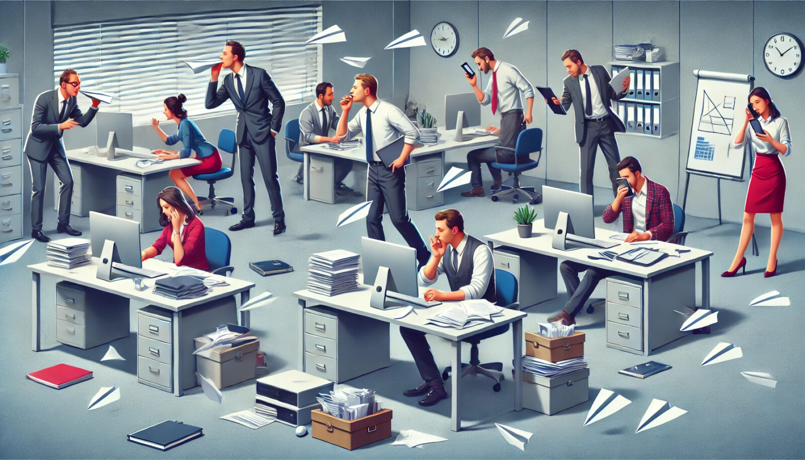 I dipendenti improduttivi, in ambienti senza controllo, sottraggono tempo e risorse all'azienda distraendosi con chiacchiere o acquisti online, riducendo efficienza e produttività.